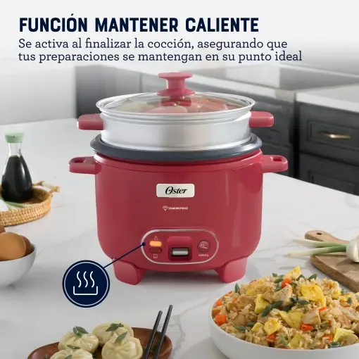 La Arrocera Oster DiamondForce de 10 Tazas CKSTRC10DFPNK combina tecnología avanzada, durabilidad y estilo en un diseño moderno con un vibrante color rojo perlado, ideal para quienes buscan una cocina práctica y con personalidad.