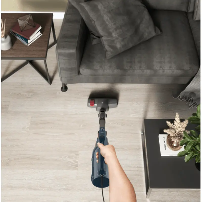 Su potente motor y tecnología Cyclone Power garantizan una succión eficiente que elimina polvo, migas y pelos de mascotas en cualquier superficie, ofreciendo resultados impecables en menos tiempo. Equipado con cable largo, proporciona libertad de movimiento sin interrupciones, y su diseño ligero y ergonómico facilita el manejo y almacenamiento.