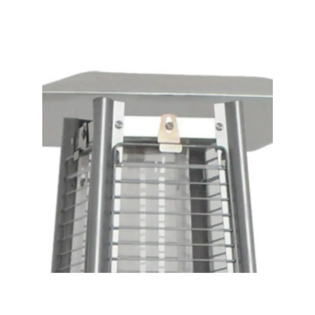 Su estructura robusta y resistente a la intemperie garantiza durabilidad y un desempeño confiable incluso en exteriores. Además, cuenta con un sistema de seguridad antivuelco y una rejilla protectora que evita el contacto directo con el elemento calefactor, asegurando un uso seguro en todo momento.
