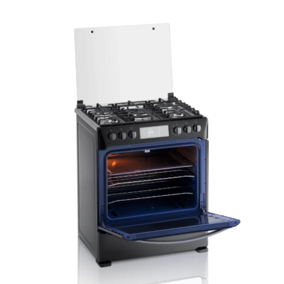 La Indurama Niza Zafiro redefine el estilo en la cocina. Su diseño de 30 pulgadas (76 cm) en color negro mate con puerta de acero inoxidable aporta un contraste sofisticado que se roba las miradas. A diferencia de las cocinas tradicionales, este modelo incorpora un Timer Digital Táctil en el panel frontal, permitiéndote programar alarmas y controlar el tiempo de cocción con precisión digital, brindando un aire de modernidad tecnológica a tu hogar.