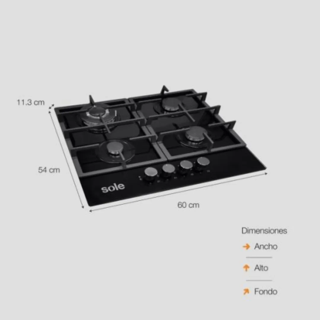 Este modelo de la marca Sole ha sido fabricado para destacar en cocinas contemporáneas por su acabado de lujo y alta funcionalidad. Su mesa de vidrio templado de alta resistencia no solo es elegante, sino que facilita enormemente la limpieza diaria. Cuenta con parrillas de hierro fundido independientes que proporcionan una base sólida y estable para todo tipo de ollas y sartenes.