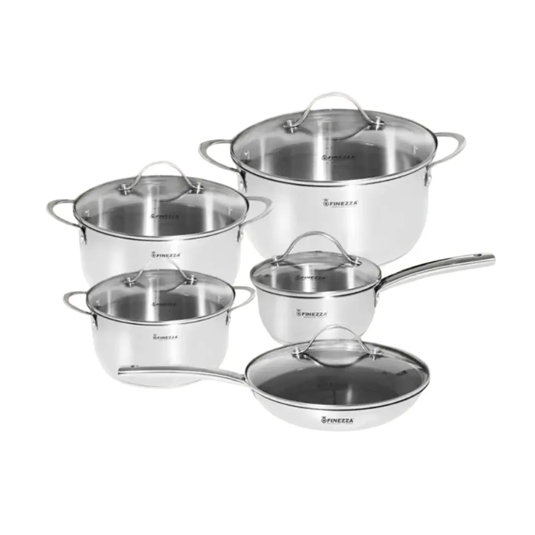 Complementa tu experiencia con el juego de ollas de acero inoxidable, que incluye diferentes tamaños de cacerolas, sartenes y tapas de vidrio templado para todo tipo de preparaciones. Su material resistente distribuye el calor de manera uniforme y mantiene el brillo con el uso diario.