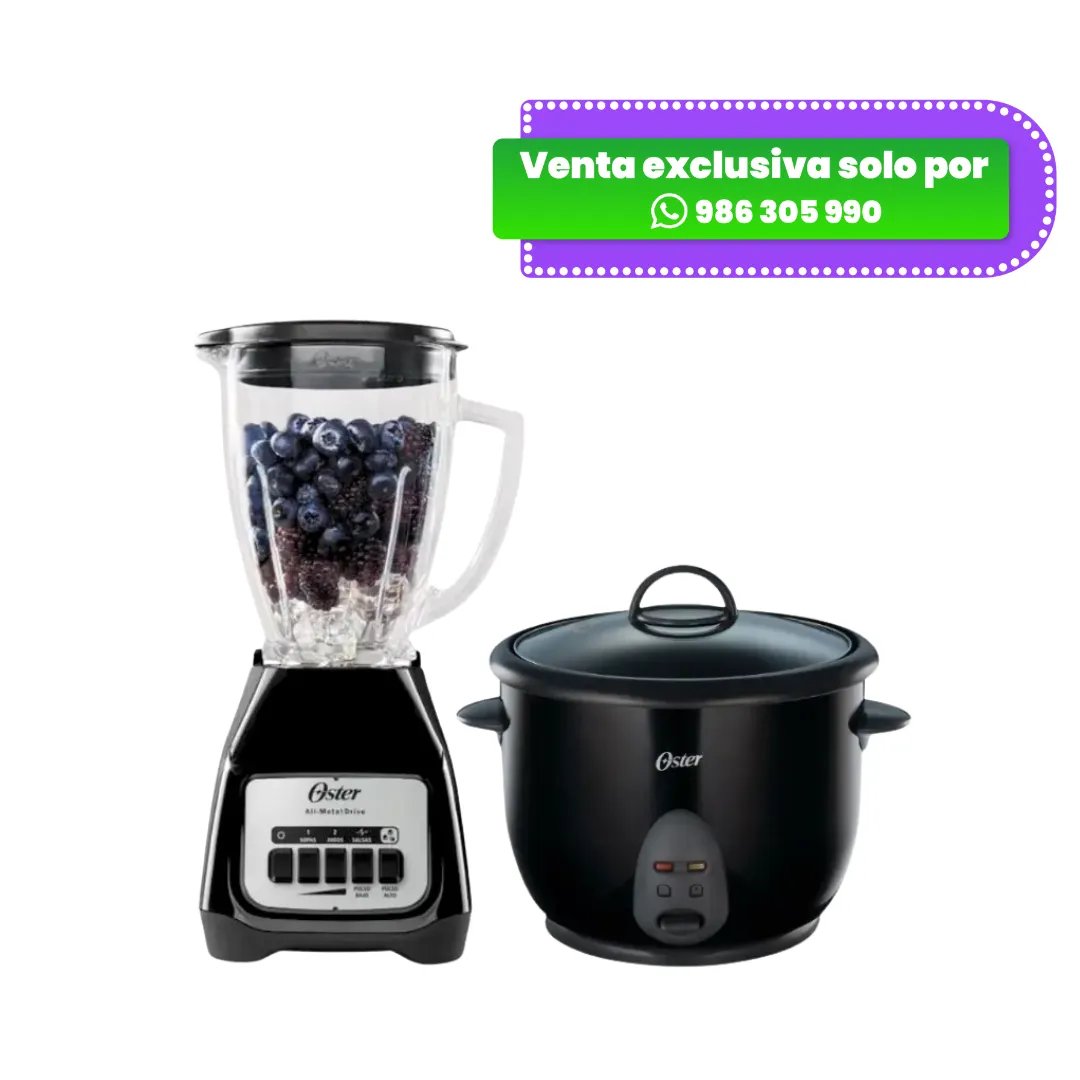 Simplifica tu cocina y disfruta de preparaciones deliciosas todos los días con el Combo OSTER Licuadora + Arrocera Multiuso de 10 tazas, una combinación perfecta de potencia, practicidad y diseño funcional.