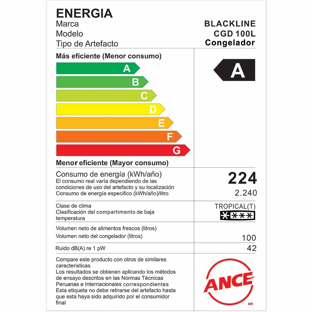La Congeladora BLACKLINE CGD-100L es un congelador horizontal (o Chest Freezer) de diseño compacto, ideal para hogares, apartamentos pequeños o como un congelador secundario de apoyo. Su capacidad de 100 Litros la hace perfecta para el almacenamiento a largo plazo de alimentos congelados o para el manejo de inventarios pequeños. El diseño de arcón aprovecha eficientemente el espacio interno y, gracias a su acabado en color Blanco, mantiene una estética sencilla y funcional.