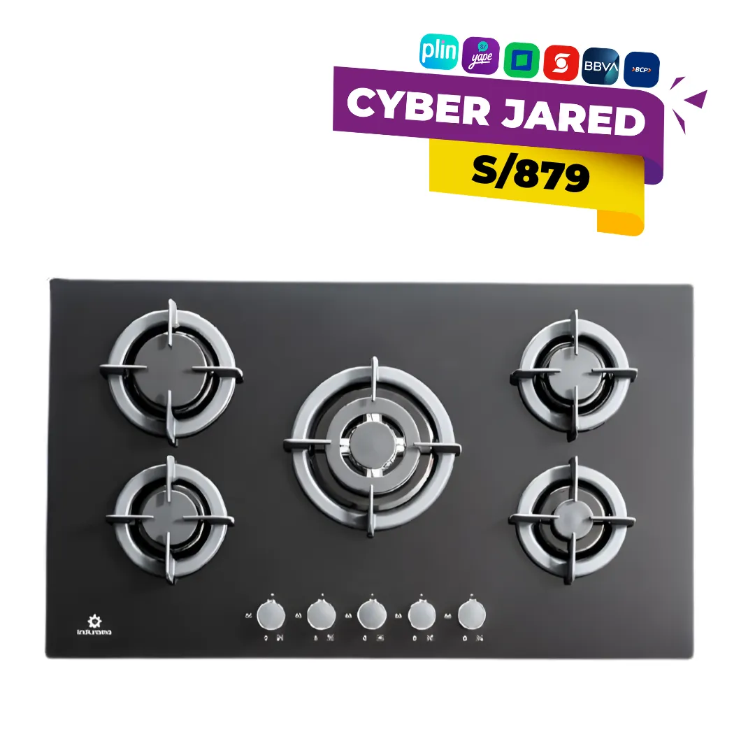 La Encimera Indurama EGI-905VDNEG está pensada para quienes buscan una cocina visualmente ligera y sofisticada. Con sus 90 cm de ancho, ofrece el espacio ideal para cocinar con comodidad en familias grandes. Su superficie de Vidrio Templado Negro de alta resistencia no solo es segura, sino que se convierte en el elemento central de decoración, reflejando limpieza y modernidad.