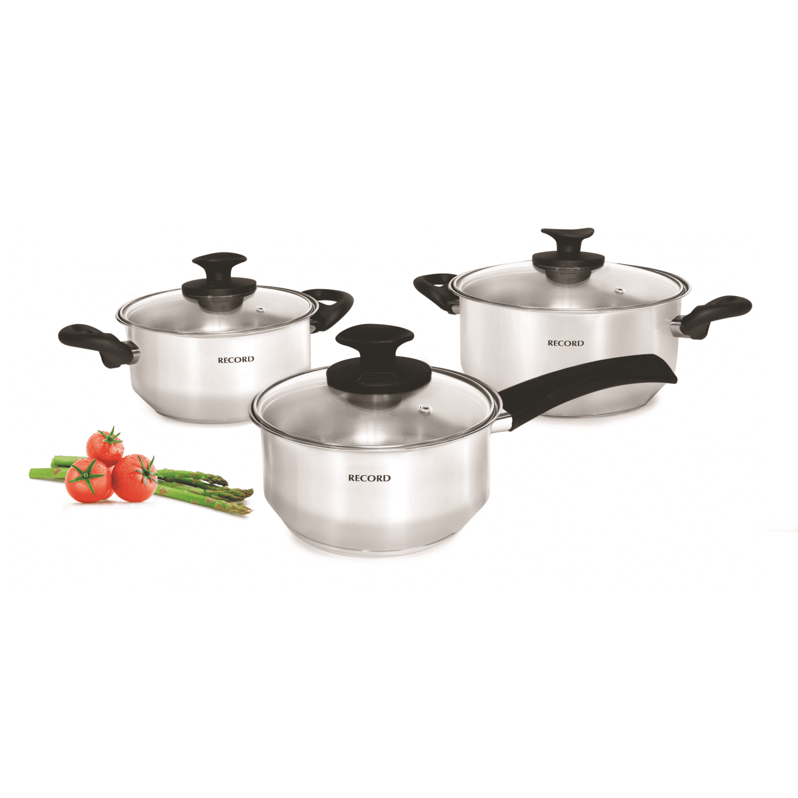 Juego de Ollas Record Encanto Acero Inoxidable 6pz con Tapa/Vidrio