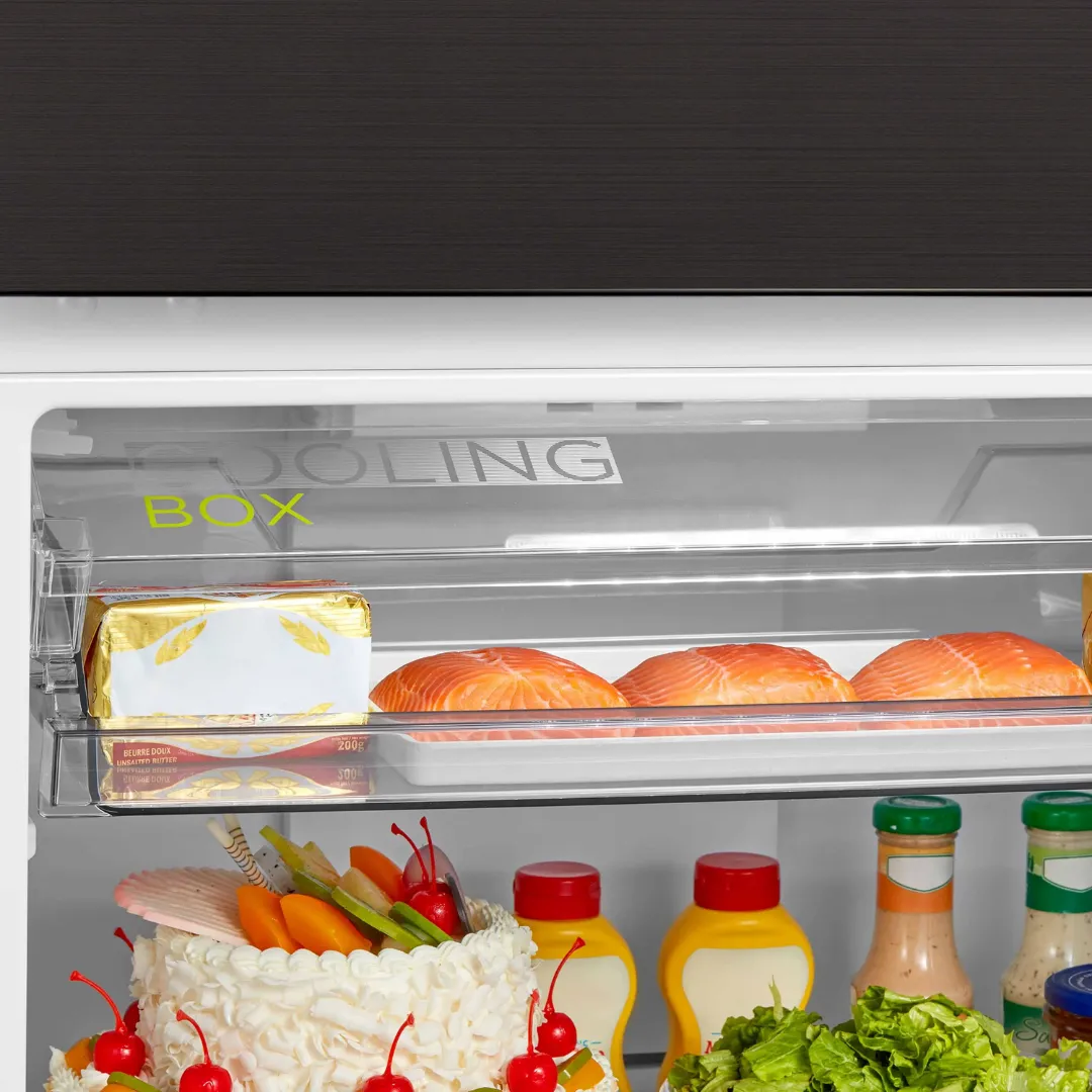 Este modelo de la marca Midea, fabricante #1 de electrodomésticos en el mundo, integra tecnologías avanzadas para la conservación profesional de tus alimentos. Su sistema Multi Air Flow distribuye el aire frío en múltiples niveles, asegurando una temperatura constante, mientras que el compartimento Cooling Box ofrece una zona extra fría ideal para mantener carnes y pescados en estado óptimo.