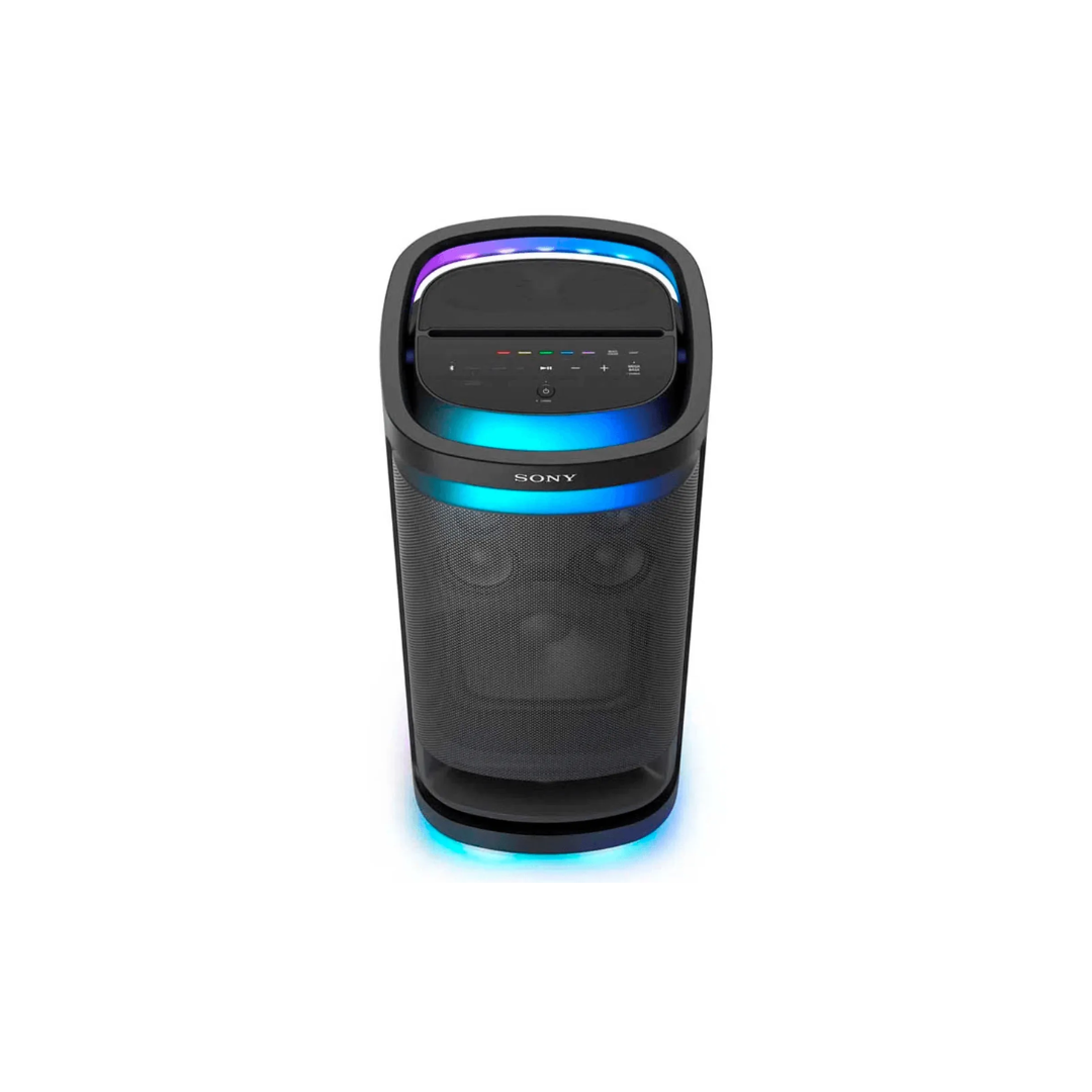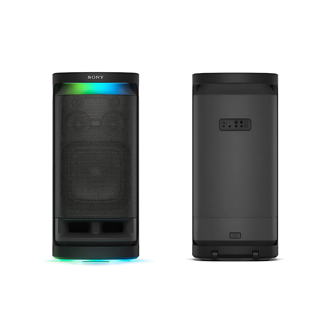 Su diseño portátil con asa telescópica y ruedas integradas facilita el transporte, mientras que la función Party Connect permite enlazar múltiples parlantes Sony compatibles para ampliar la experiencia sonora.