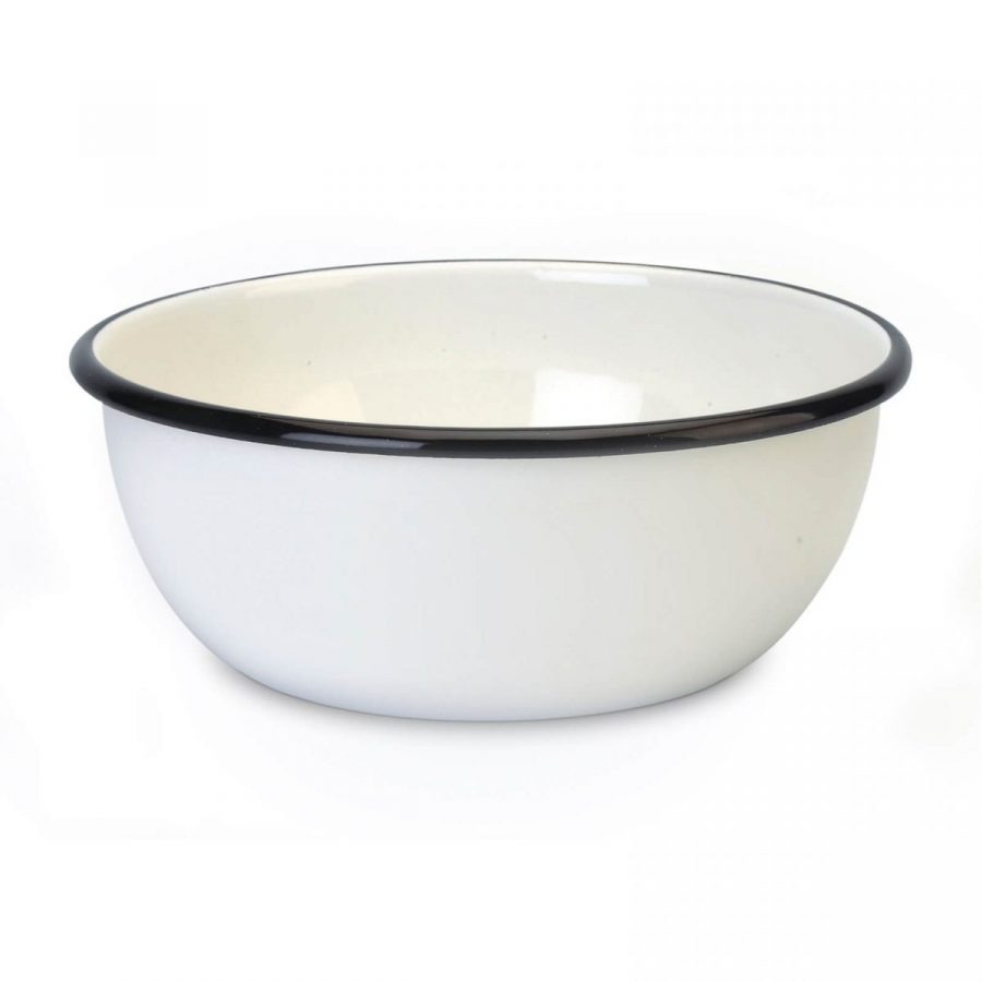 - Producto manufacturado en acero al carbono revestido con una cubierta vítrea (Esmaltado) en color blanco (interior/exterior) y borde negro.