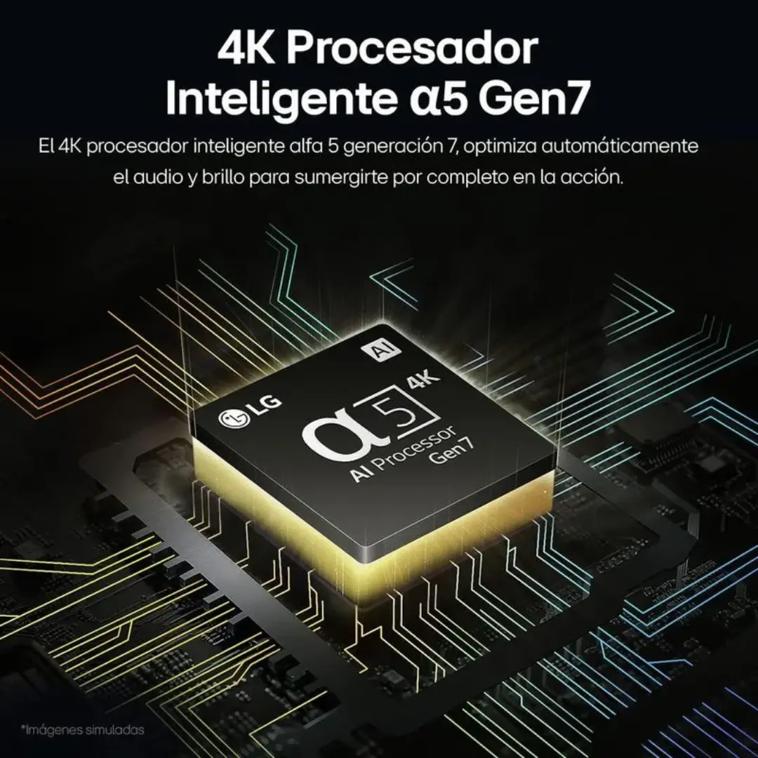 El Televisor LG 55UT7300 es un Smart TV de 55 pulgadas que proporciona una inmersión visual con resolución 4K UHD (3,840 x 2,160). Este modelo se destaca por ofrecer una imagen nítida y detallada, impulsada por un potente Procesador $alpha$5 AI Processor 4K Gen7 (o el equivalente en su línea), que utiliza inteligencia artificial para escalar contenido de menor resolución y optimizar tanto la calidad de imagen como la de sonido. Además, soporta tecnologías como HDR10 Pro, lo que garantiza un alto rango dinámico para colores más vivos y detalles precisos en zonas oscuras y brillantes.