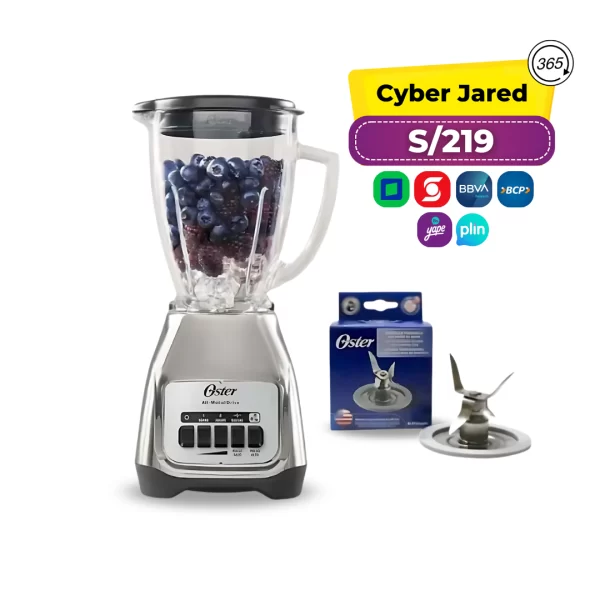 Combo Oster: Licuadora de 2 Velocidades con Vaso de Vidrio + Cuchilla Adicional